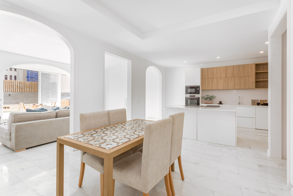 Amplia zona común formada por con salón comedor y cocina abierta, con salida a terraza. Oportunidad única por la zona.